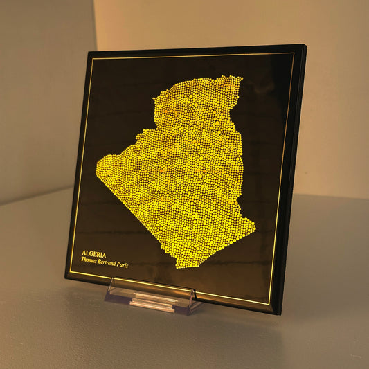 Carreau de faïence noir - Algérie en or avec inscription / Thomas Bertrand Paris