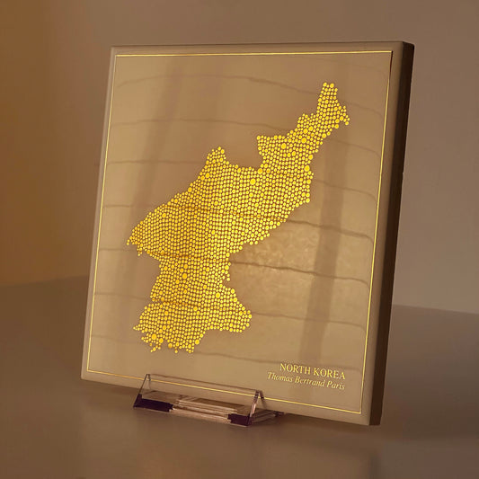 Carreau de faïence - Corée du Nord en or avec inscription / Thomas Bertrand Paris