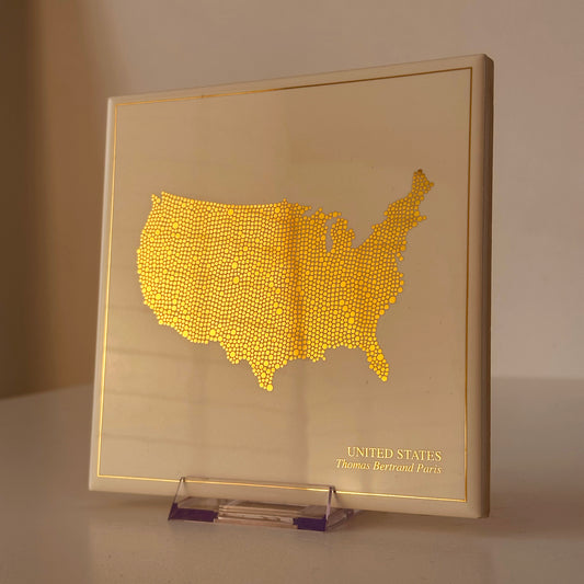 Carreau de faïence - Etats-Unis en or avec inscription / Thomas Bertrand Paris