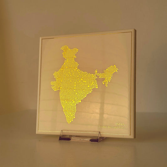 Carreau de faïence - Inde en or avec inscription / Thomas Bertrand Paris