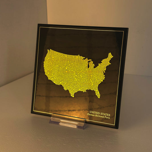 Carreau de faïence noir - Etats-Unis en or avec inscription / Thomas Bertrand Paris