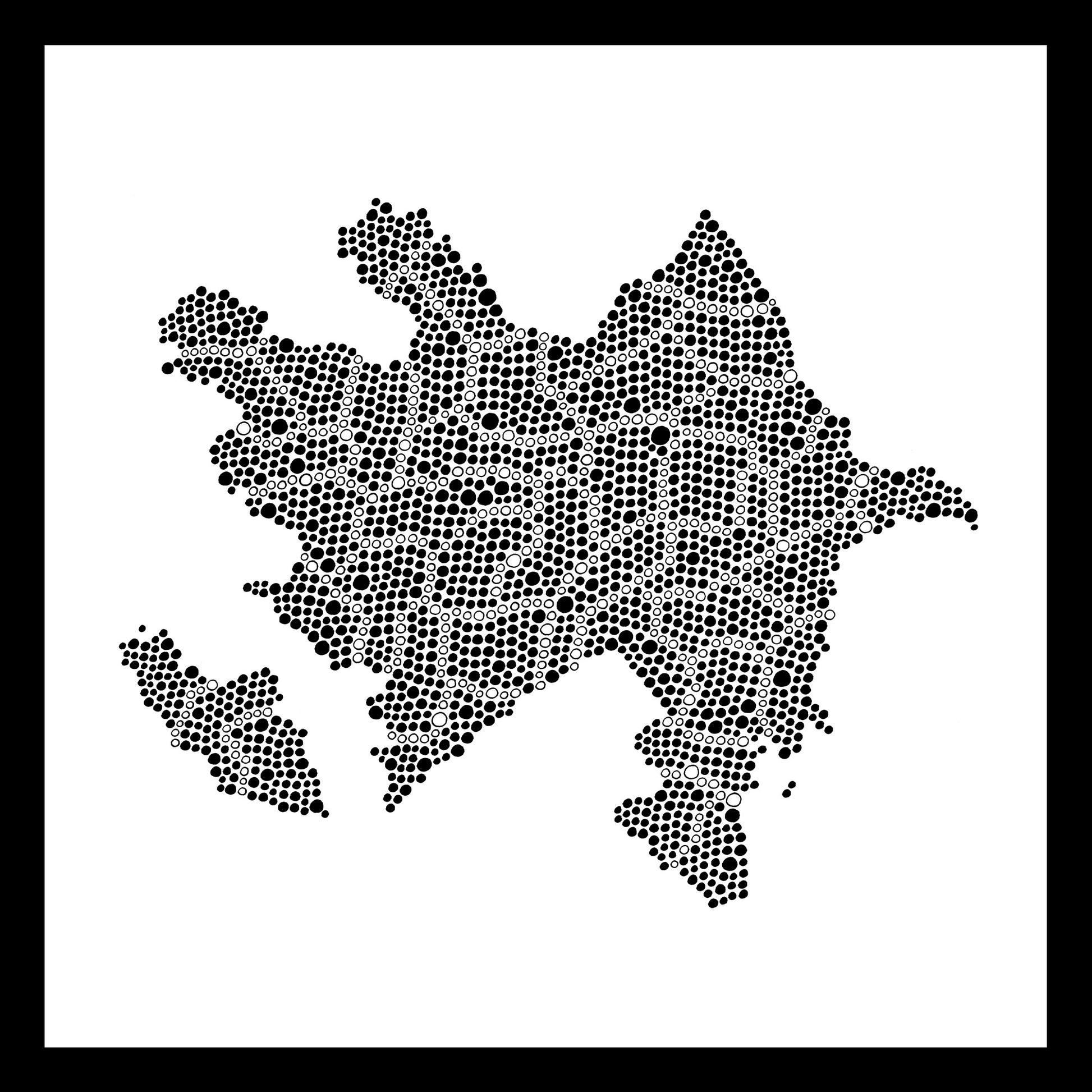 This artwork represents Azerbaijan, hand-painted on earthenware. It is the only existing copy: each country in the world is created only once in its original version, in black and white.