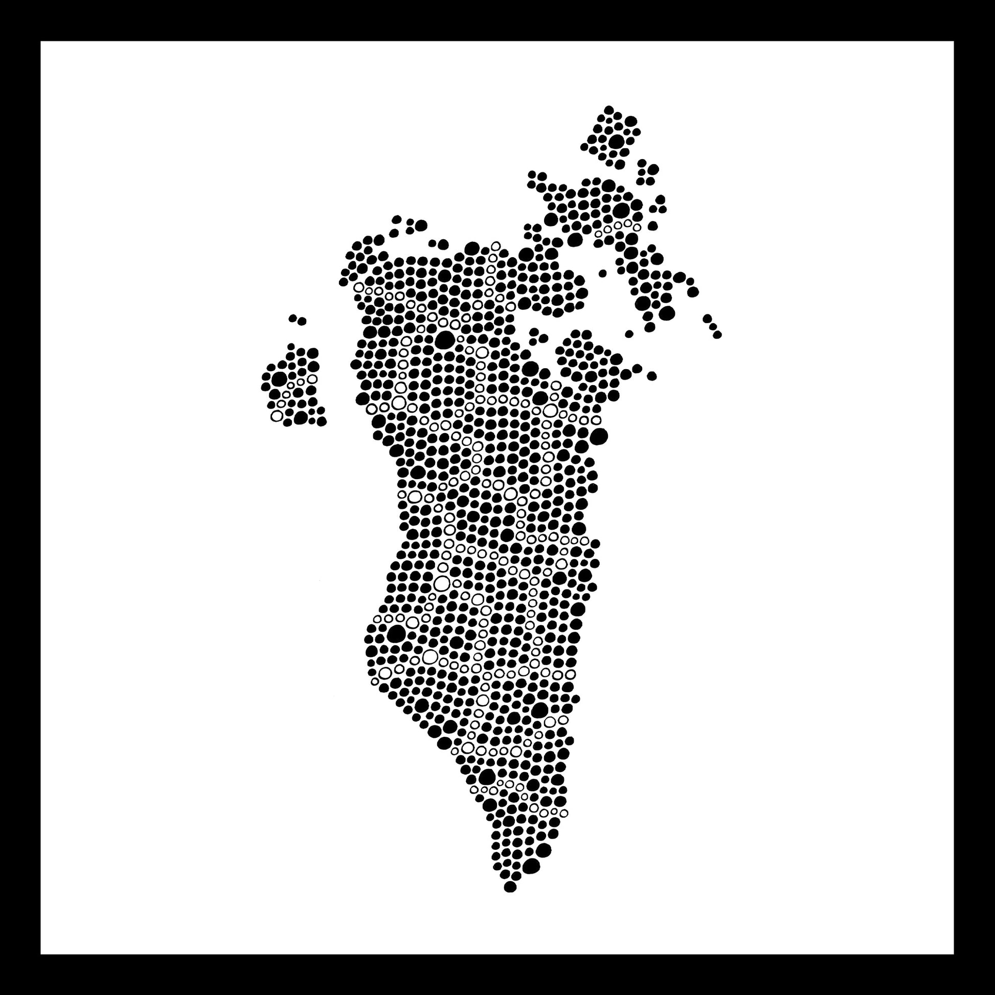 This artwork represents the Kingdom of Bahrain, hand-painted on earthenware. It is the only existing example: each country in the world is created only once in its original version, in black and white.