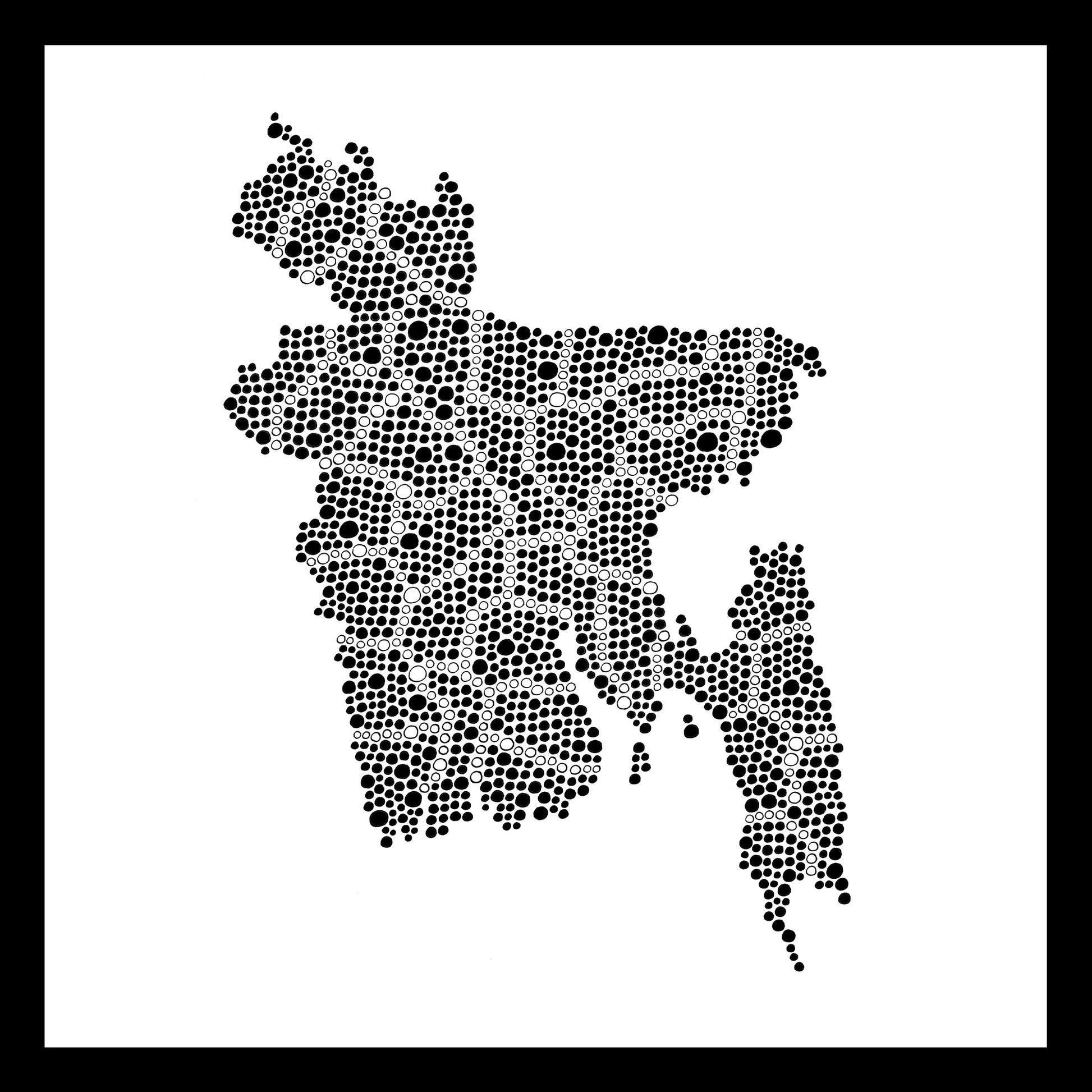 This hand-painted artwork represents Bangladesh. It is the only existing copy: each country in the world is created only once in its original version, in black and white.