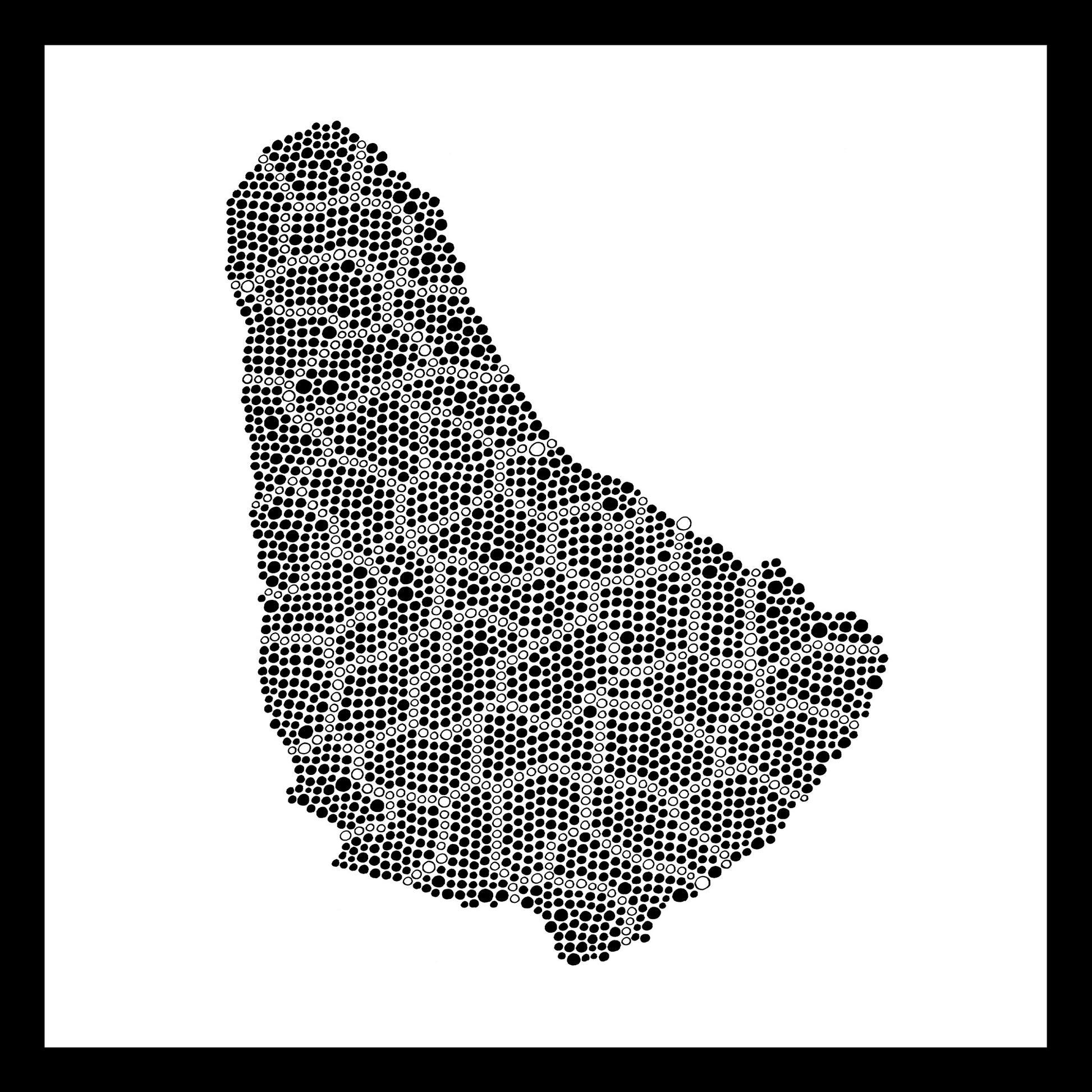 This hand-painted artwork depicts Barbados. It is the only existing copy: each country in the world is created only once in its original, black and white version.