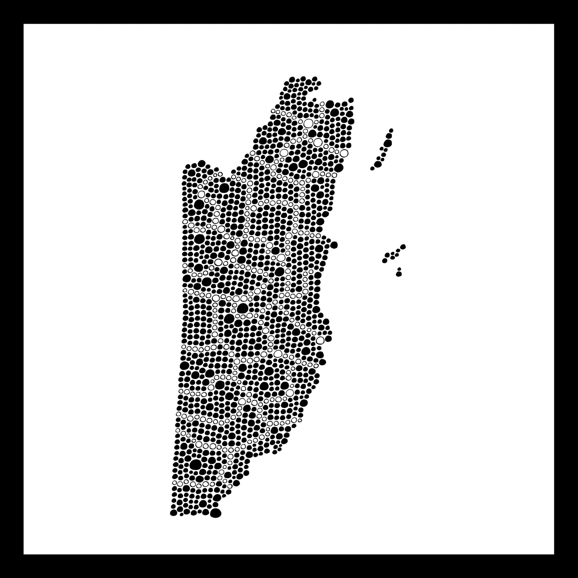 This hand-painted artwork represents Belize. It is the only existing copy: each country in the world is created only once in its original version, in black and white.