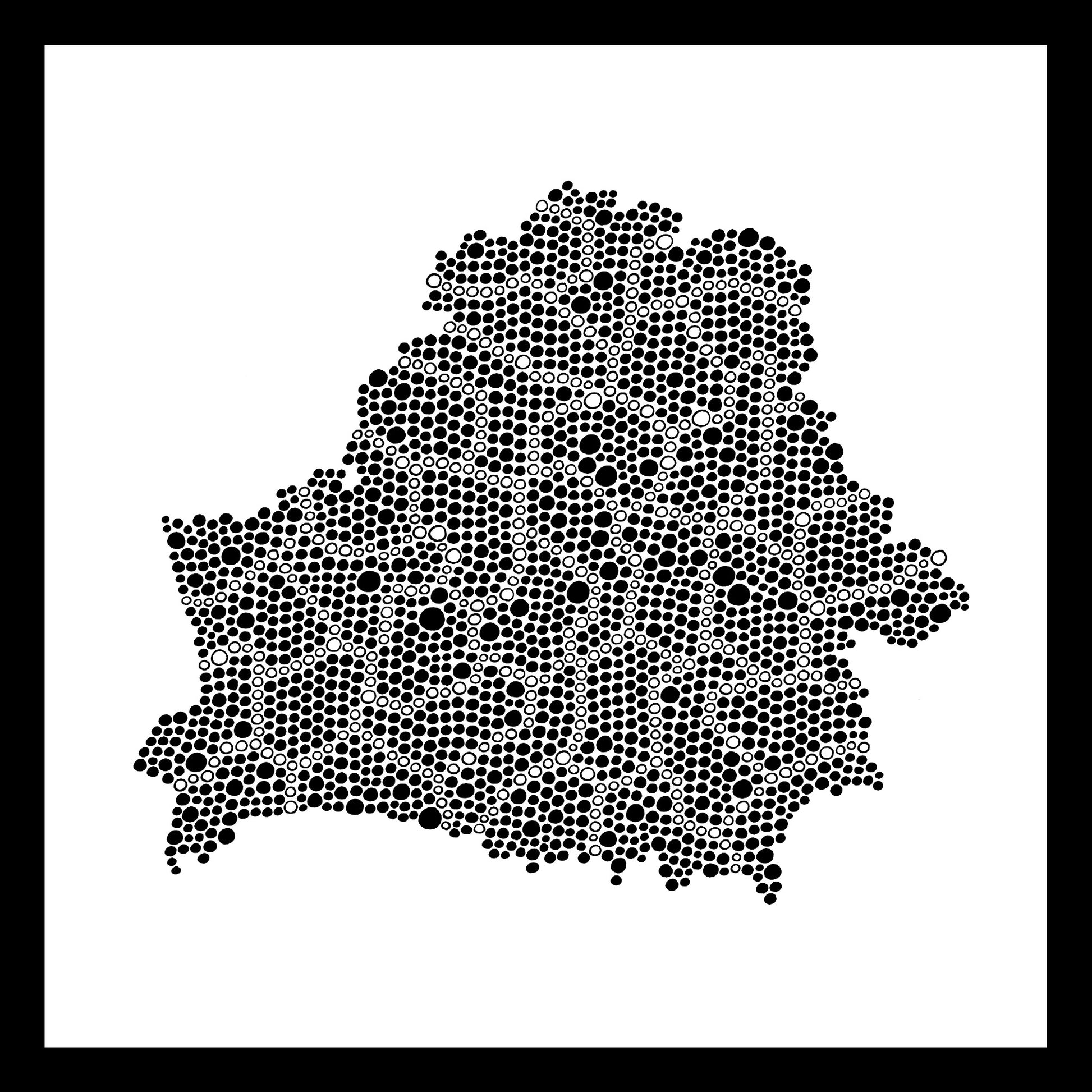 This hand-painted artwork represents Belarus. It is the only existing copy: each country in the world is created only once in its original version, in black and white.