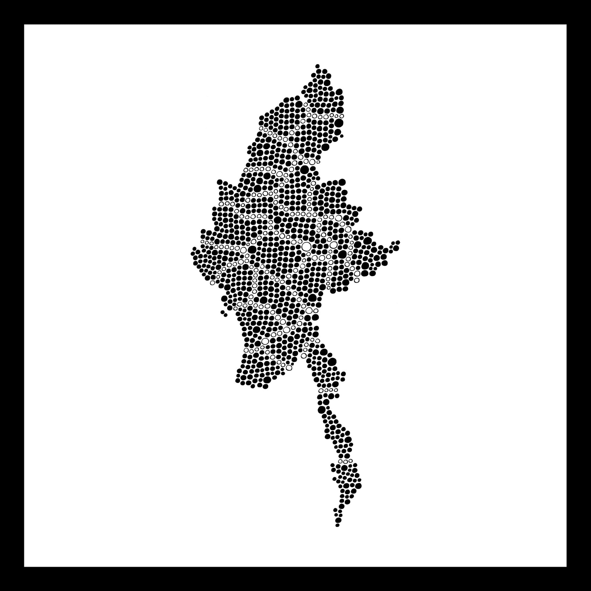 This hand-painted artwork depicts Burma. It is the only existing copy: each country in the world is created only once in its original, black and white version.