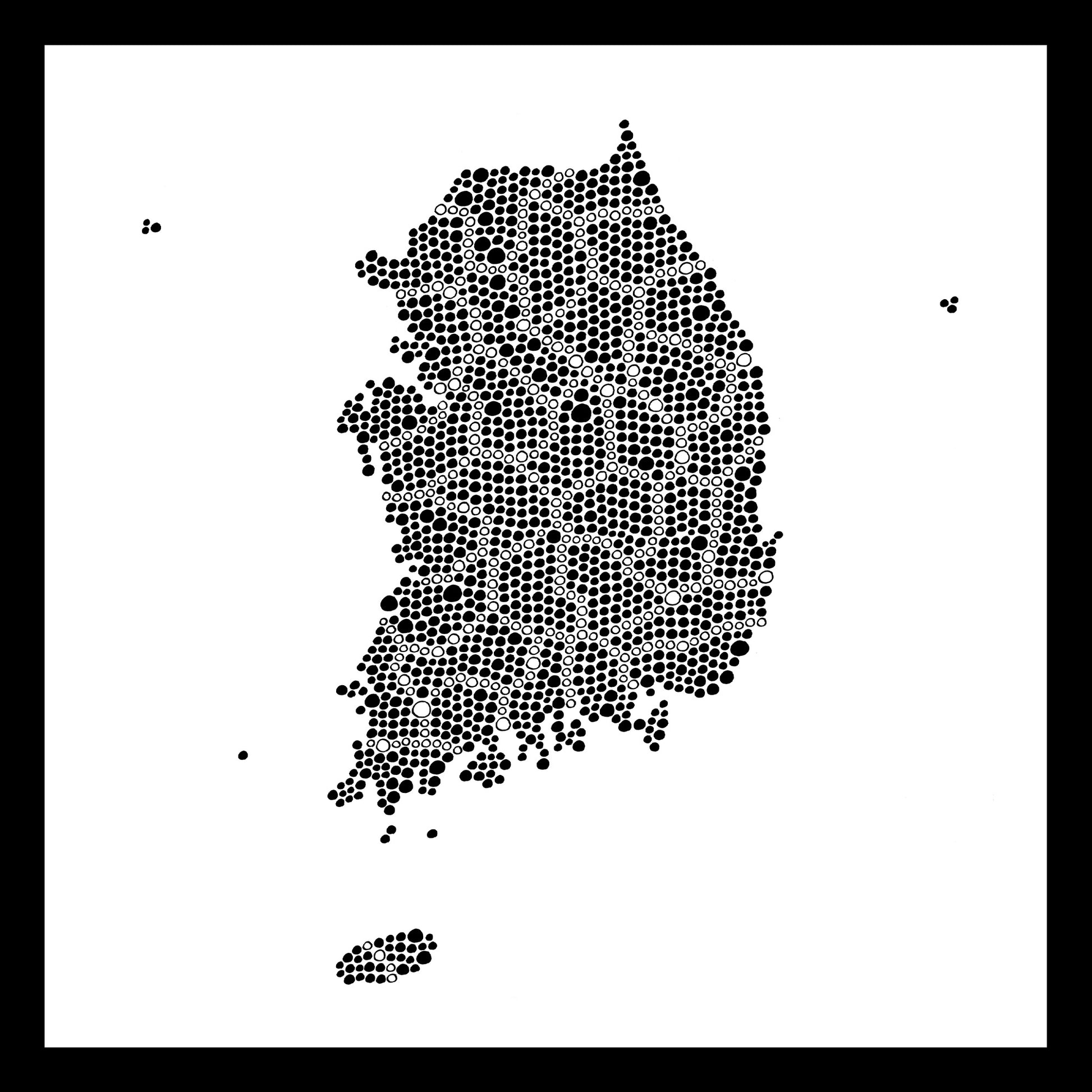 This artwork represents South Korea. Each country in the world was hand-painted by Thomas Bertrand between 2019 and 2023.