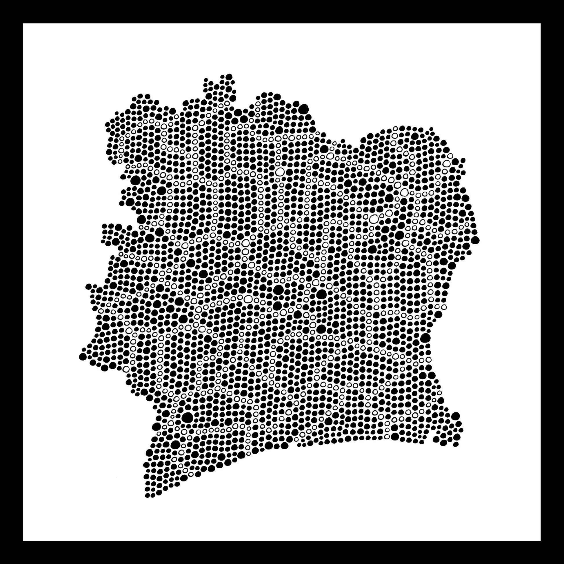 This artwork represents Ivory Coast. Each country in the world was hand-painted by Thomas Bertrand between 2019 and 2023.