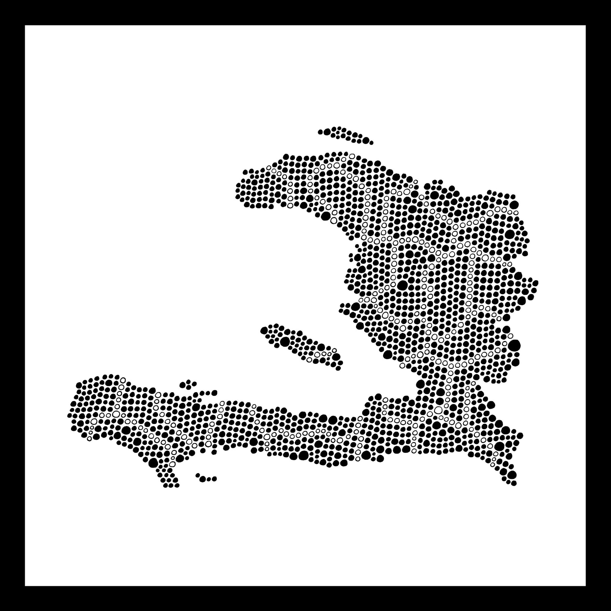 This artwork represents Haiti. Each country in the world was hand-painted by Thomas Bertrand between 2019 and 2023.