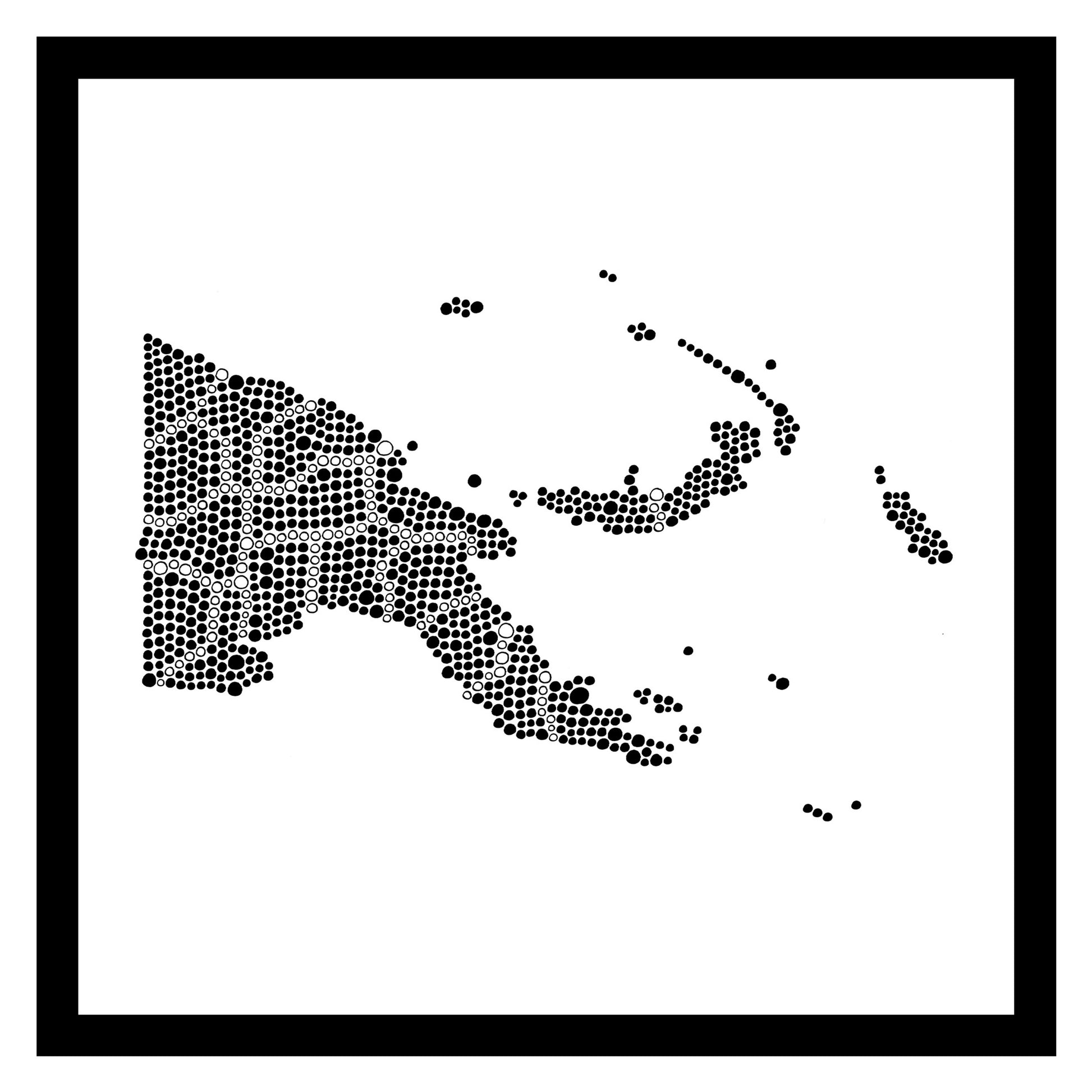 Cette œuvre représente la Papouasie-Nouvelle-Guinée. Chaque pays du monde a été peint à la main par Thomas Bertrand entre 2019 et 2023.
