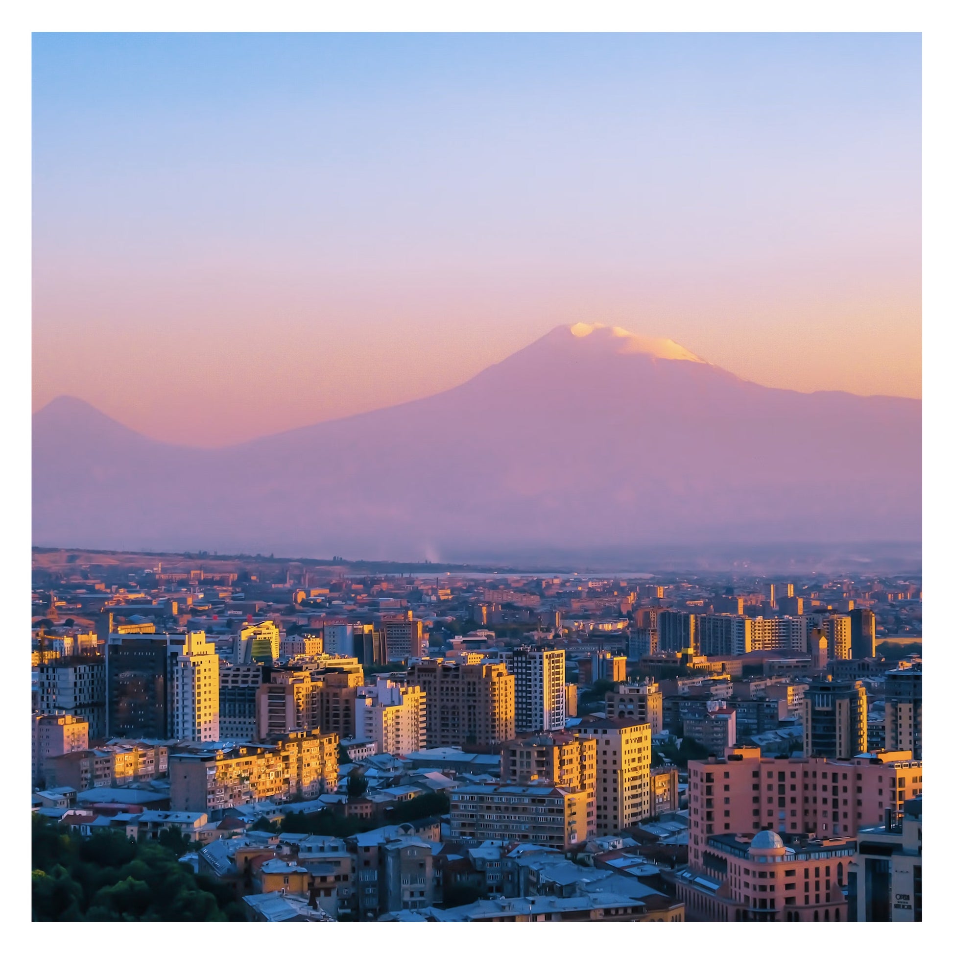 Cette œuvre représente l'Arménie, peinte à la main sur faïence. Elle est l'unique exemplaire existant : chaque pays du monde est créé une seule fois en version originale, en noir et blanc.