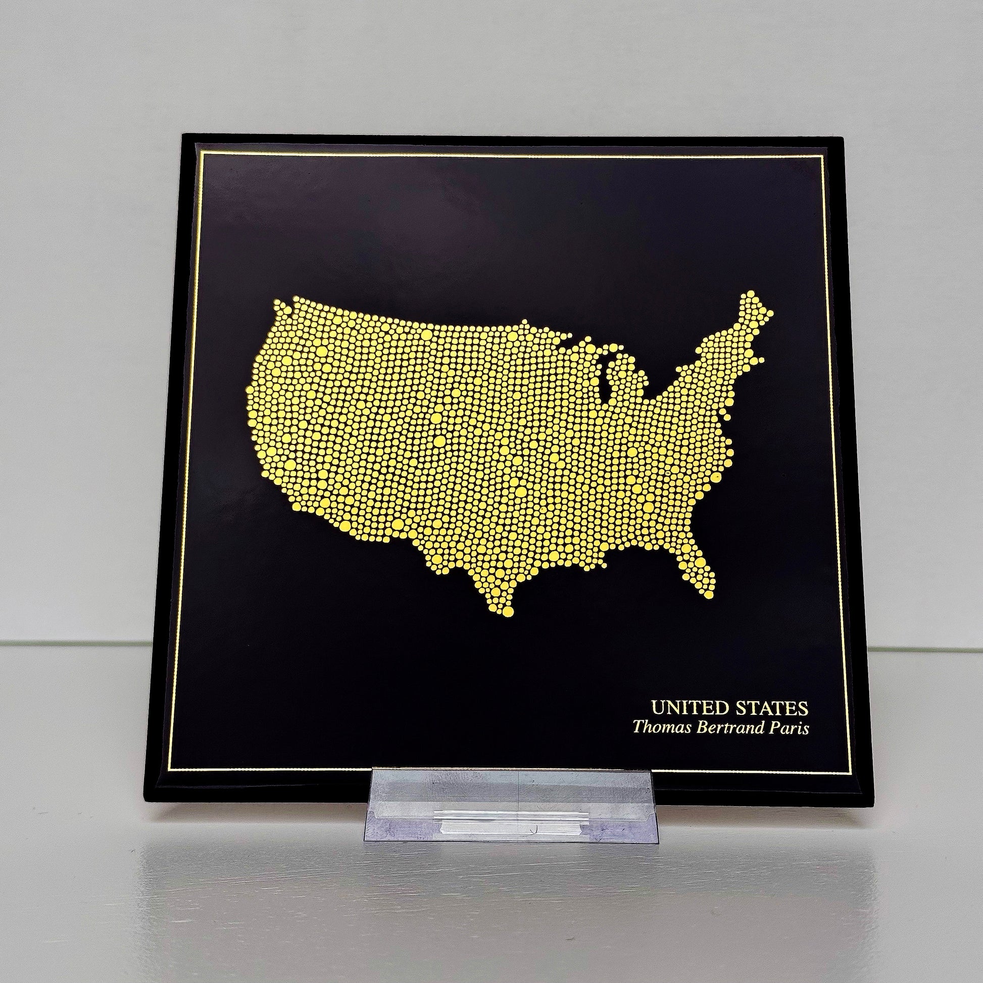 Carreau de faïence noir - Etats-Unis en or avec inscription / Thomas Bertrand Paris