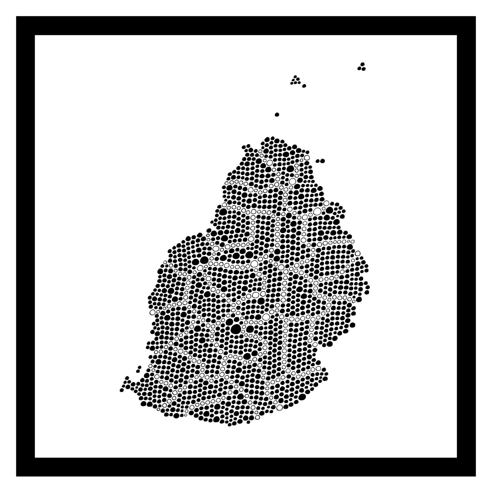 Cette œuvre représente Maurice. Chaque pays du monde a été peint à la main par Thomas Bertrand entre 2019 et 2023.